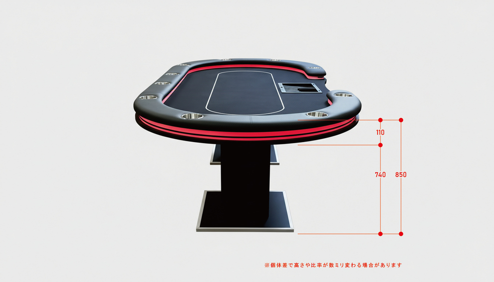 7色の発光に切り替えれるLED内蔵のポーカーテーブル。ラシャもお店のオリジナルで制作していただくことも可能です。 重厚な高級感のある商品ですが、組み立ては簡単で搬入もしやすいです。