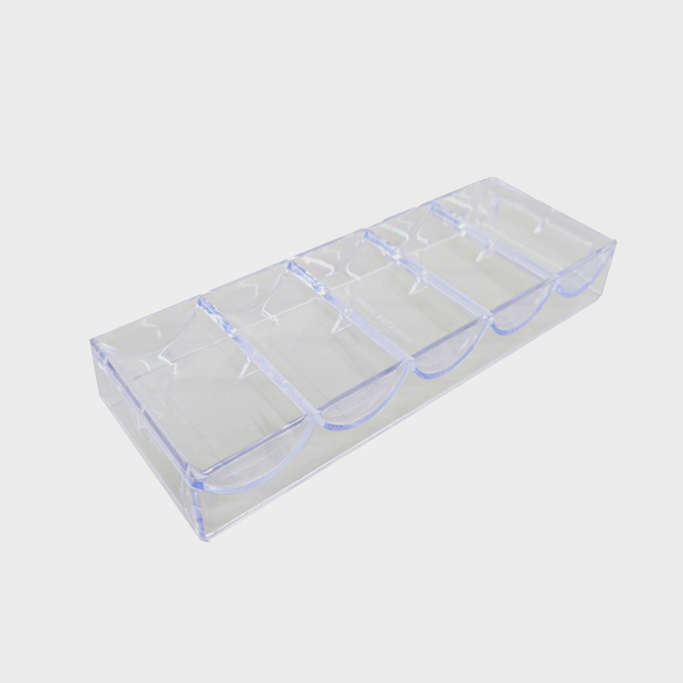5列で合計100チップが入る透明アクリル製のチップトレイ。