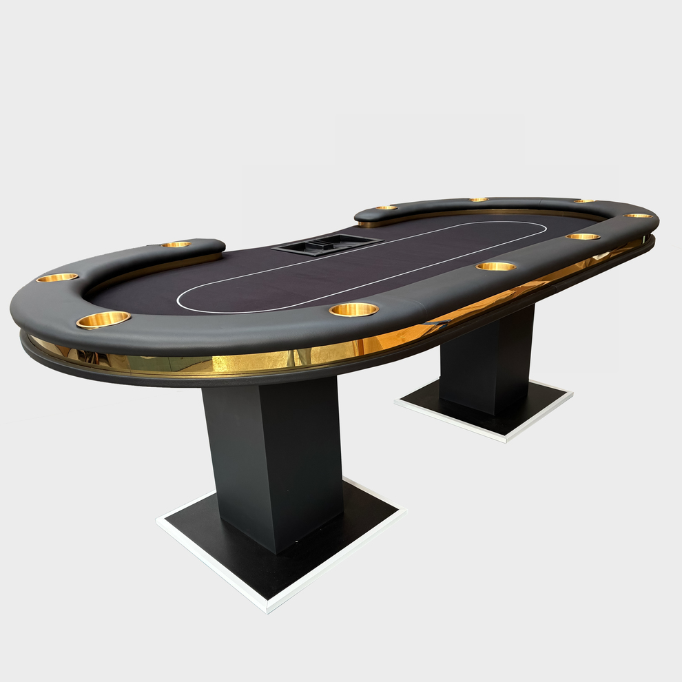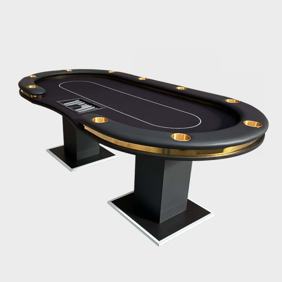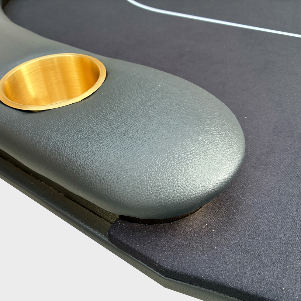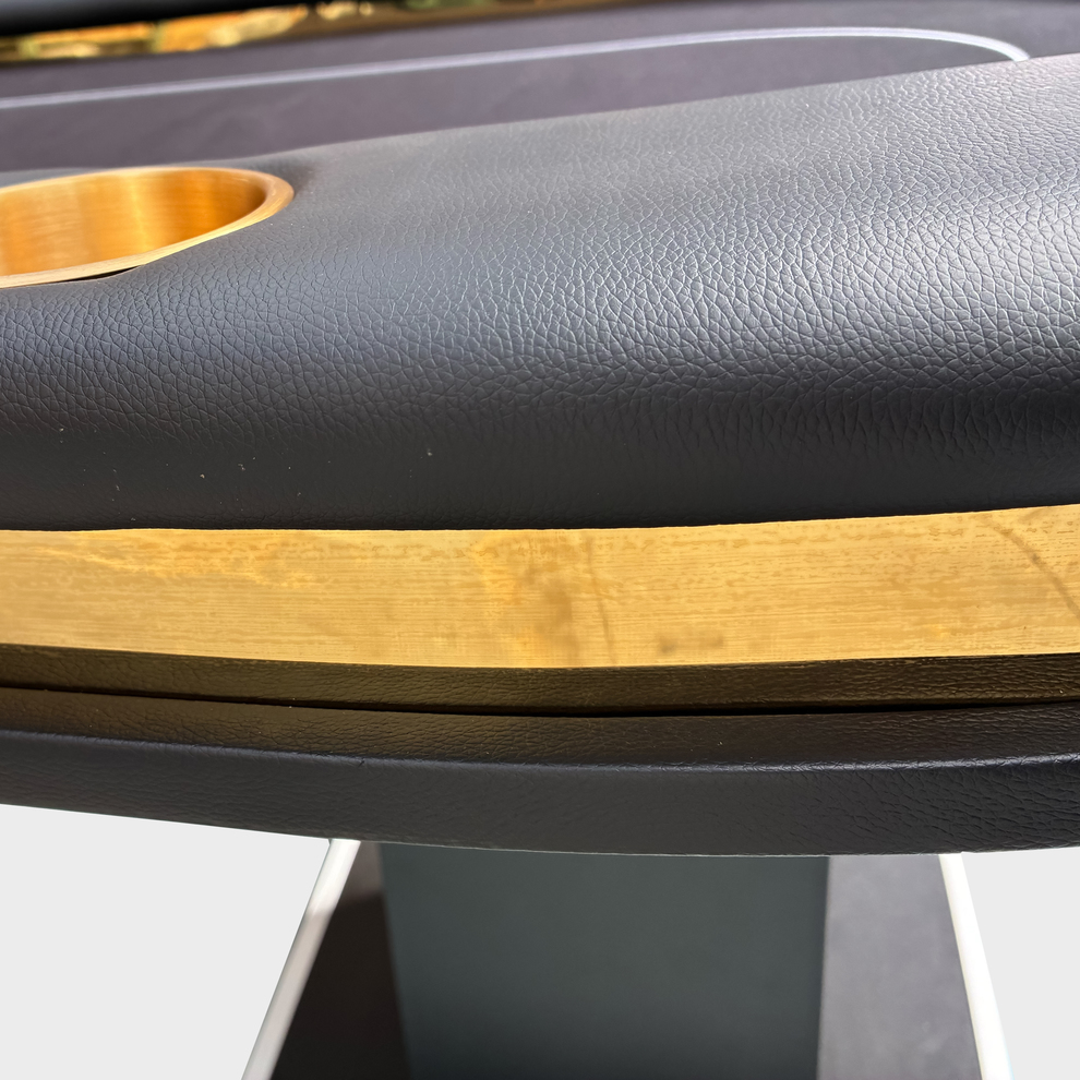 本体はLEDポーカーテーブルをベースに照明部分を金属パーツに置き換えたリッチな見た目のポーカーテーブル。ラシャもお店のオリジナルで制作していただくことも可能です。 重厚な高級感のある商品ですが、組み立ては簡単で搬入もしやすいです。